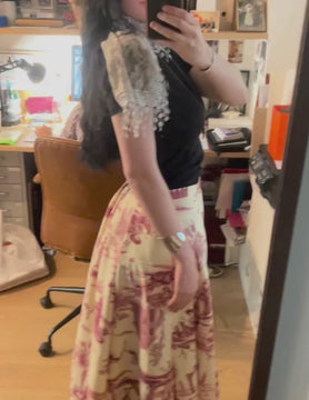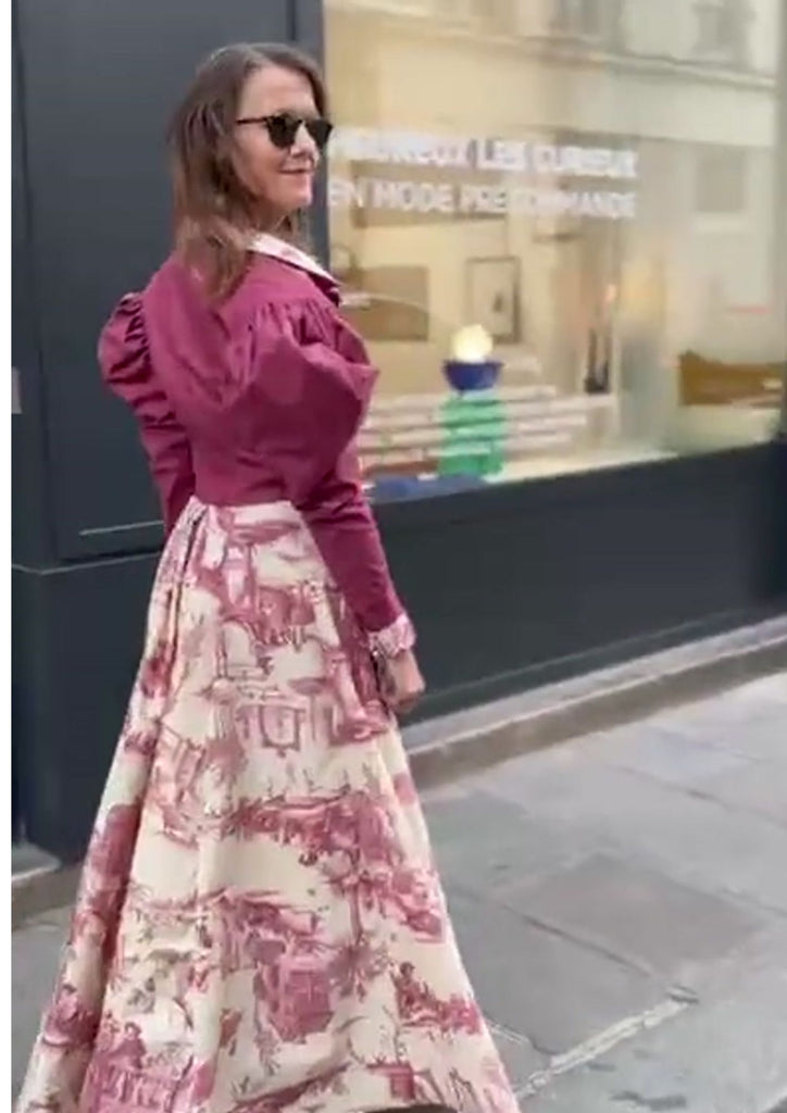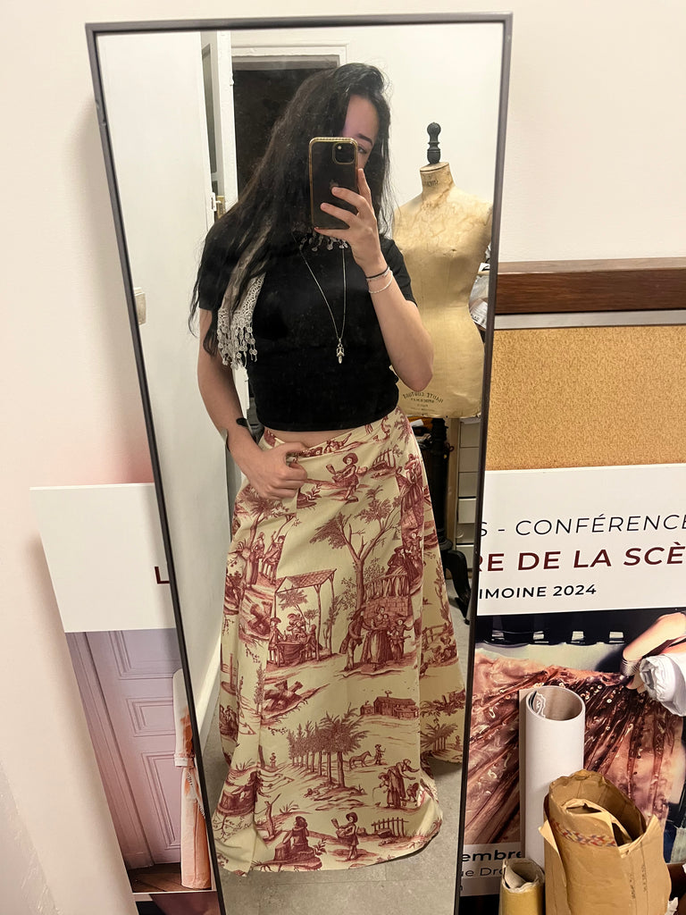 En version maxi la jupe Cléo se porte pour une soirée ou un look rétro à décaler avec un blouson, une veste en jean ou un simple tee-shirt.