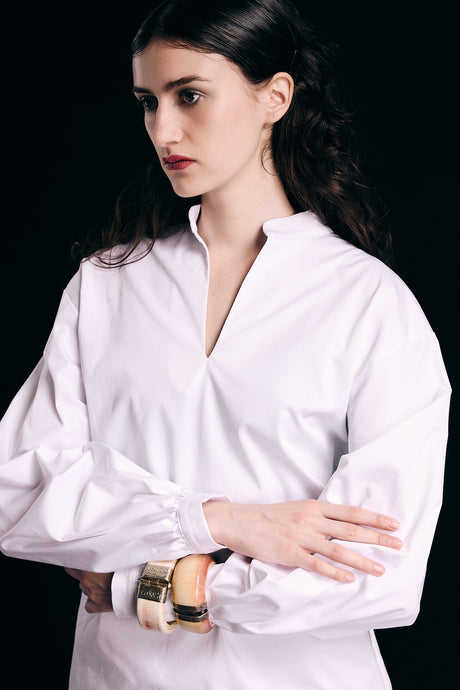 Le best-seller Bonâme : une blouse très ample à manches bouffantes. A la fois cool et très couture, elle ne se démode jamais et se porte avec tout mais absolument tout!