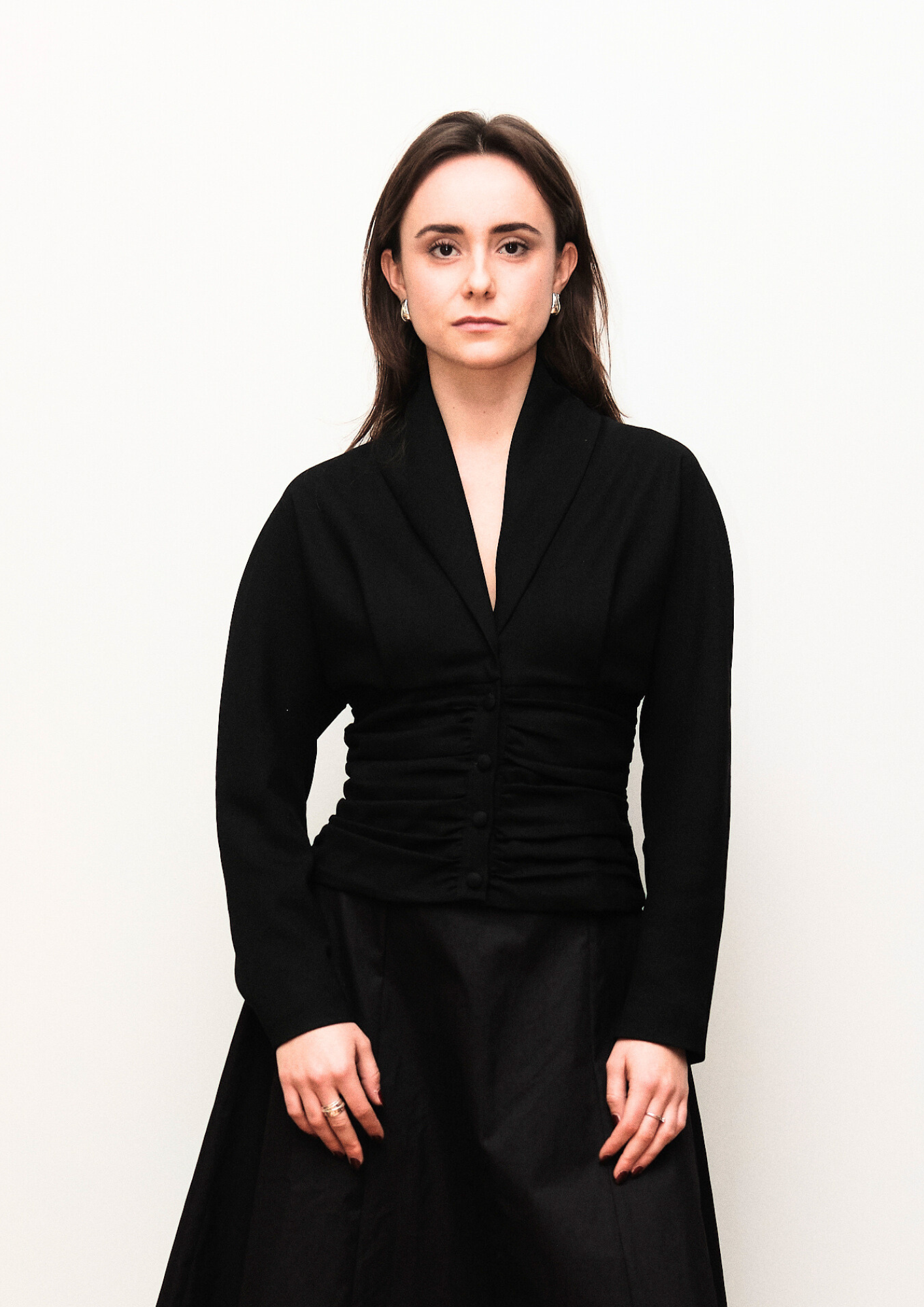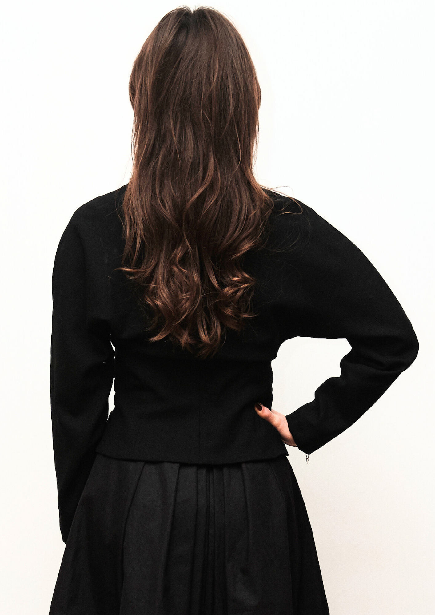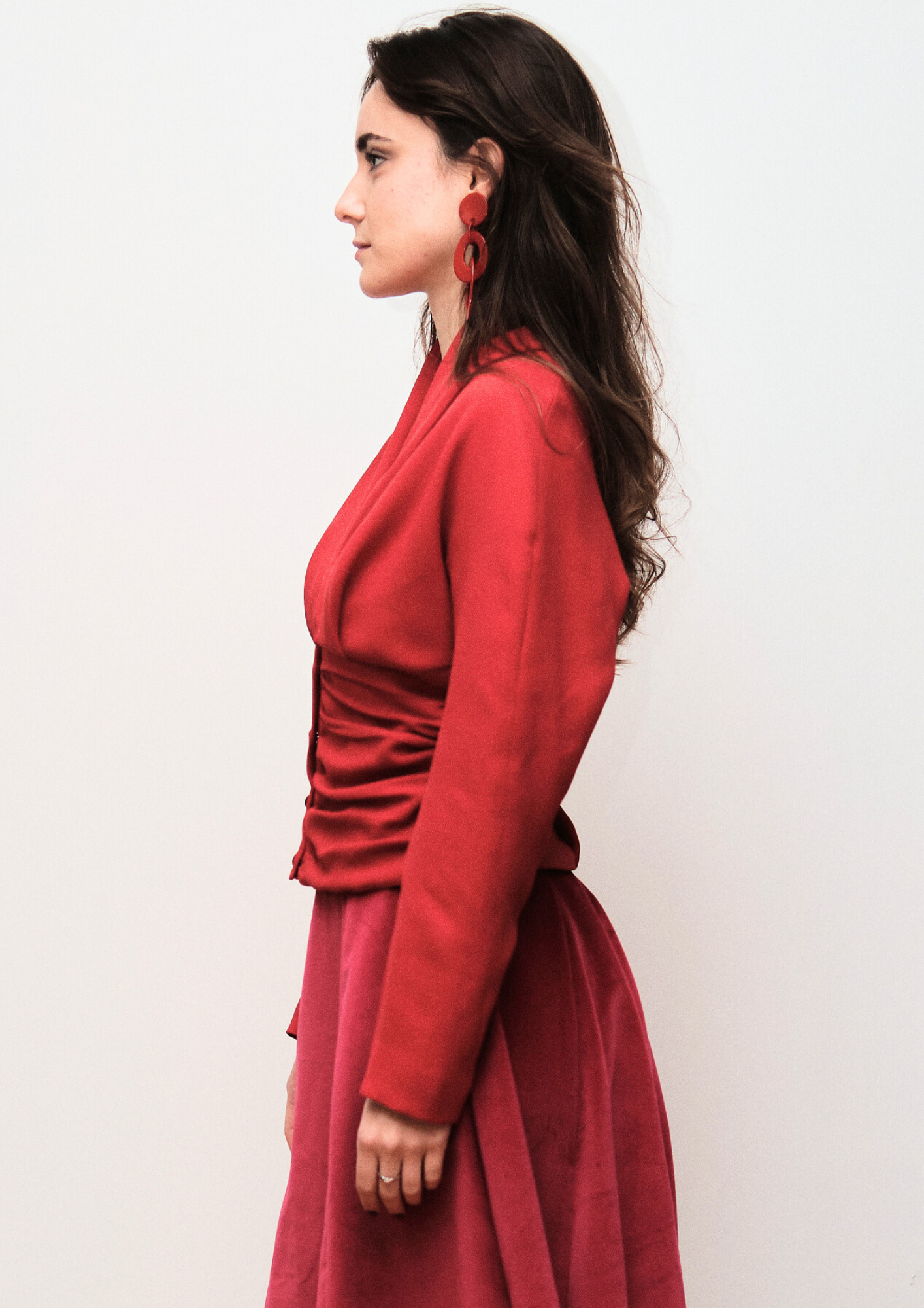 Inspirée de Maria Casarès la veste Maria épouse la taille tout en offrant un confort aux épaules. Elle permet une silhouette chic, distinguée et très féminine.